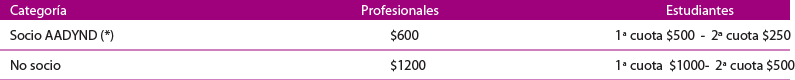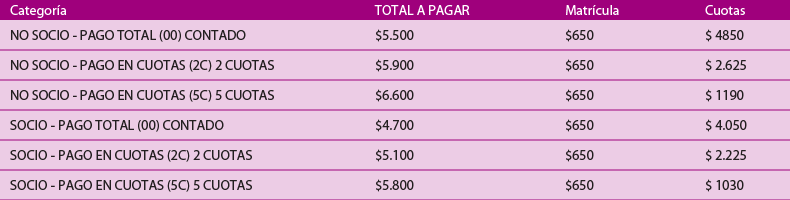 (*) Para gozar del arancel preferencial para socios es necesario tener tres meses pagos.