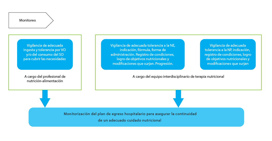 existiera), quien será el encargado del registro en la historia clínica de las condiciones nutricionales del paciente, el porcentaje de alcance de las metas nutricionales, la indicación y forma de administración de la terapia, así como todas las modificaciones relativas a la dinámica del paciente.
