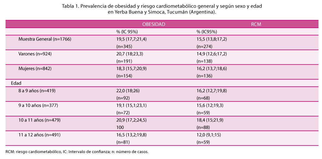 De acuerdo con la Organización Mundial de la Salud, un factor de riesgo es un rasgo, característica o exposición que incrementa la probabilidad de padecer una enfermedad o lesión (17). Es reconocido que los factores de riesgo cardiometabólicos que se expresan en la adultez responden a procesos multifactoriales de larga evolución cuyo origen se remonta a la infancia. La literatura documenta la presencia de placas ateroscleróticas, lesiones coronarias, disminución de la pared vascular en niños, niñas y adolescentes (18). Asimismo, se ha registrado insulinoresistencia, glucemia alterada y diferentes grados de dislipemias en poblaciones infanto-juveniles (19-21). Estos indicadores de riesgo se han detectado tanto en grupos de niños y niñas con diferente grado de obesidad, como también en escolares normonutridos con valores de circunferencia de cintura por encima de lo esperado. En este sentido, la presencia de un 16% de niños y niñas tucumanos con riesgo cardiometabólico advierte la necesidad de acciones en salud orientadas a la prevención. Más aún si se considera que la cifra encontrada resulta semejante a la reportada en poblaciones infantiles de países como Estados Unidos, donde se presenta el panorama más severo en esta materia (22).
