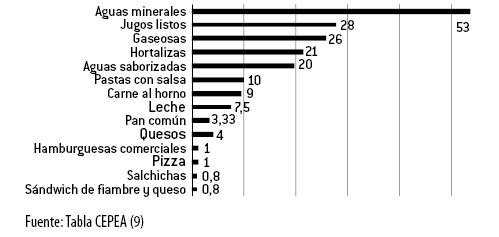 En población general, el único dato disponible corresponde a la Hoja de Consumo Aparente de alimentos elaborada por la Escuela de Nutrición de la UBA y correspondiente a información del año 2011 (12). La Hoja de Consumo Aparente (HCA) refleja la cantidad de alimentos y bebidas disponibles para su consumo por el conjunto de la población, sin desagregación por niveles socioeconómicos, etarios o geográficos. Y se elabora a partir de información de los Ministerios de Economía, Agricultura, cámaras empresarias y estudios de mercado. Sus datos no son comparables con los de encuestas alimentarias, pero su información es muy valiosa, de fácil elaboración y replicable anualmente.