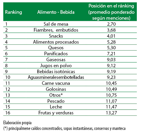 Cualquier estrategia poblacional que pretenda tener impacto en una reducción significativa de sodio en la dieta debe concentrarse en la sal que se agrega a las comidas y en muy pocos productos: pan (de panadería), fiambres y chacinados, carnes (frescas) y quesos (12). El cambio en los patrones de comidas y preparaciones con mayor grado de procesamiento fuera del hogar ha contribuido a una mayor densidad de sodio por unidad de energía (kcal). Este dato surge al comparar la HCA 2011 con otras elaboradas en los años ´80, habiendo pasado de 690 a 866 mg de sodio por cada 1000 kcal (13).