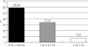 En la población bajo estudio, solo el 8% de los niños realizaba actividad física estructurada o algún deporte fuera de la escuela. Por otra parte el 40% pasaba más de dos horas por día frente a pantallas.