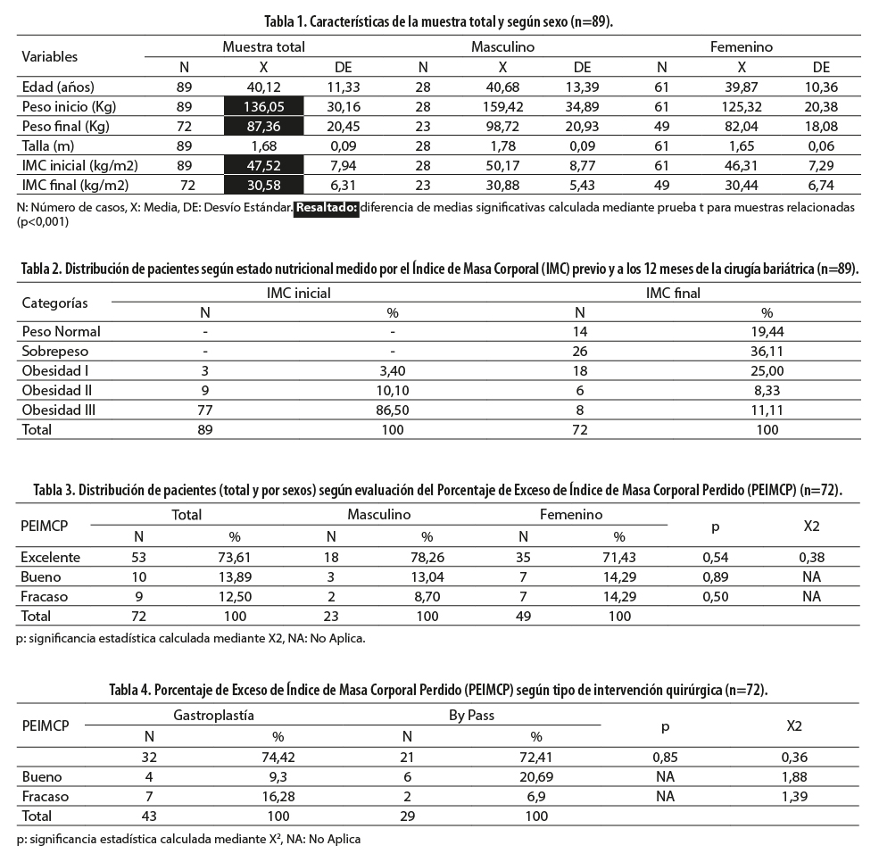 Castillo Camacho, KJ. Evolución del peso y parámetros bioquímicos en pacientes postoperados de cirugía bariátrica en el centro médico ISSEM y M Toluca, 2013. Toluca. Universidad Autónoma del Estado de México, Facultad de Medicina, 2014.