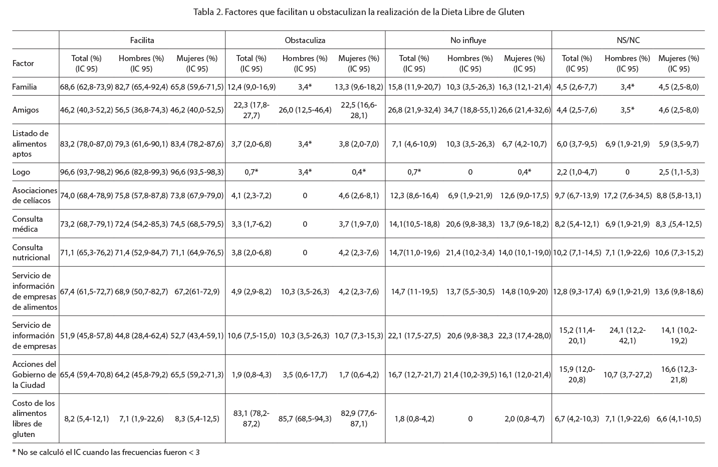 Por otro lado, se ha descripto que hay factores que se asocian con una mejor adherencia a la DLG como el entendimiento sobre la dieta, la pertenencia a alguna asociación de ayuda al celíaco y la percepción sobre la propia capacidad de cumplirla a pesar de los viajes, los cambios en el estado de ánimo y el estrés (5). A su vez, otro estudio ha identificado que algunas emociones negativas, especialmente el enojo, tienen impacto negativo en la DLG y se asocian con transgresiones voluntarias (15).
