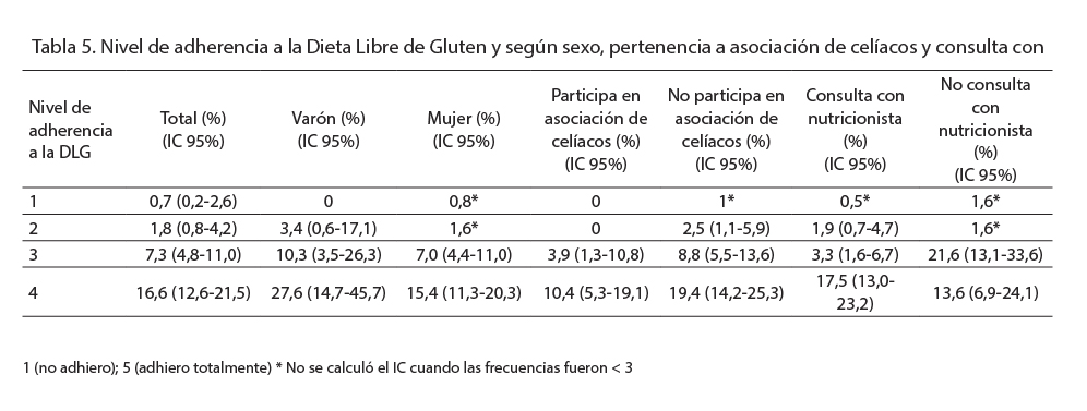 Adherir a la DLG puede resultar un desafío debido a que se modifican rutinas, hábitos alimentarios y se condicionan diversos aspectos de la vida social (10-13). A su vez, se estima que entre el 42% y el 91% de las personas con EC adhieren a la DLG de manera estricta, diferencia que depende en parte de la definición tomada para adherencia estricta (14).